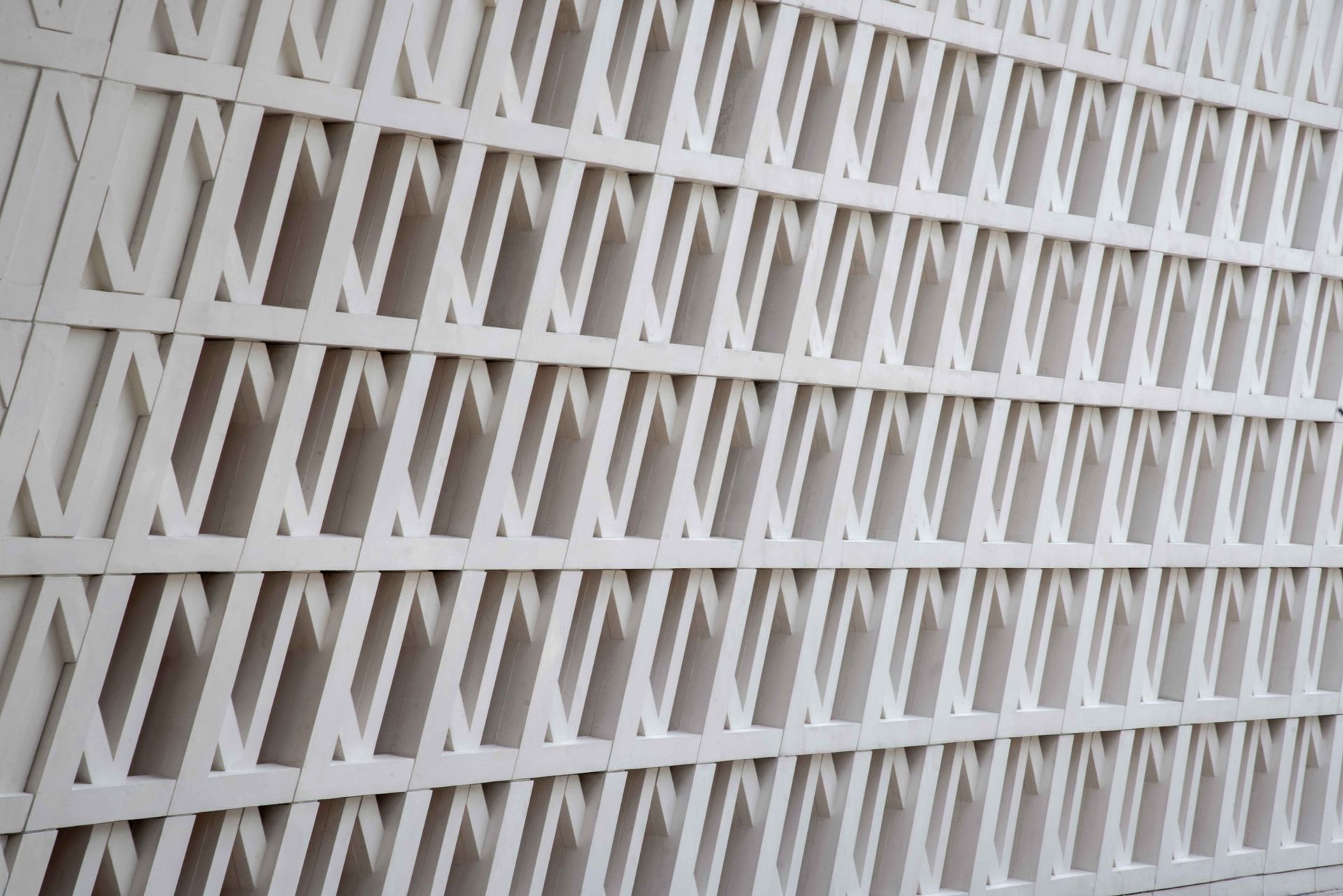 The brand’s signature logo was abstracted into a repetitive pattern that also serves a structural purpose. The collaboration with Predecón helped bridge the gap between concept and execution, requiring precise detail and close teamwork. The façade’s structure works independently from the plaza’s, with each concrete module supported by an unseen double metal grid around the perimeter. The closed façade facing the Periférico road features a challenging 66-degree incline, demanding meticulous assembly.