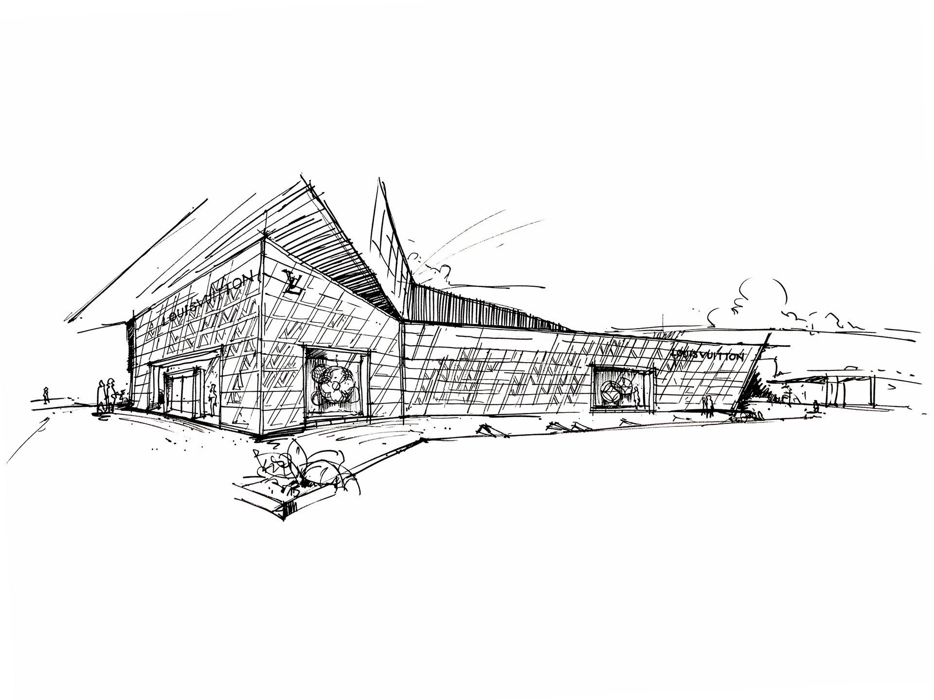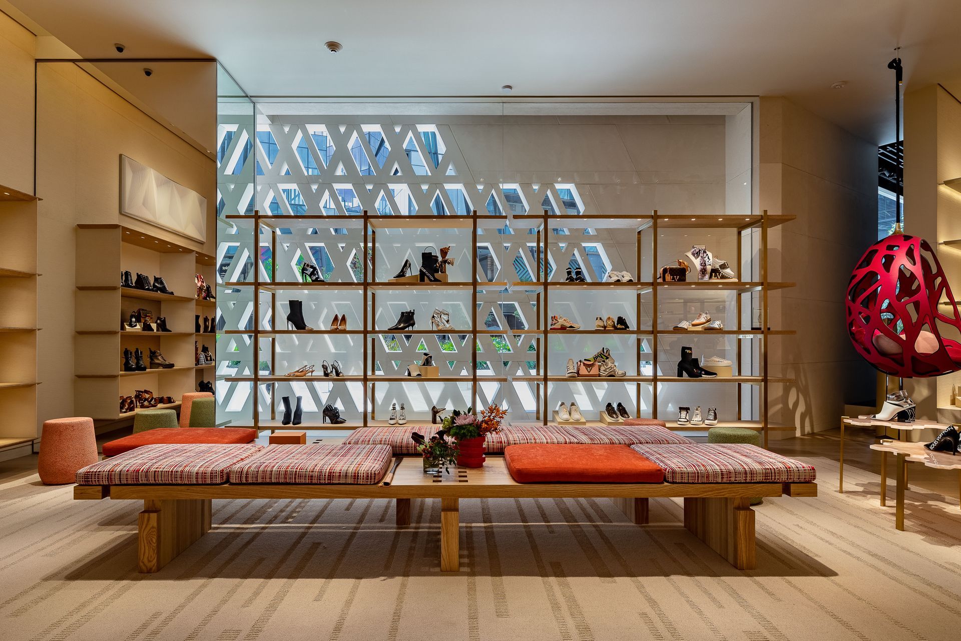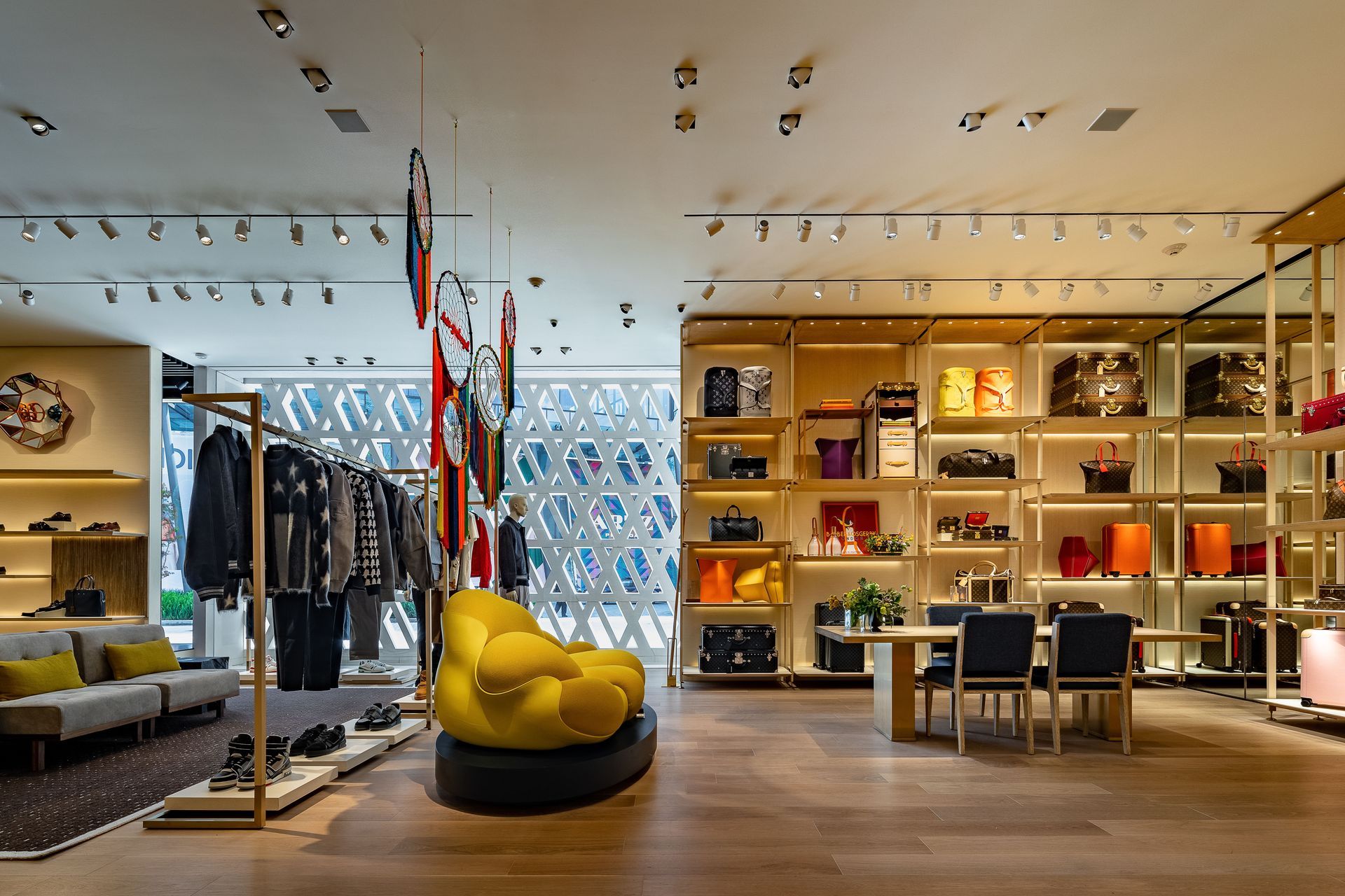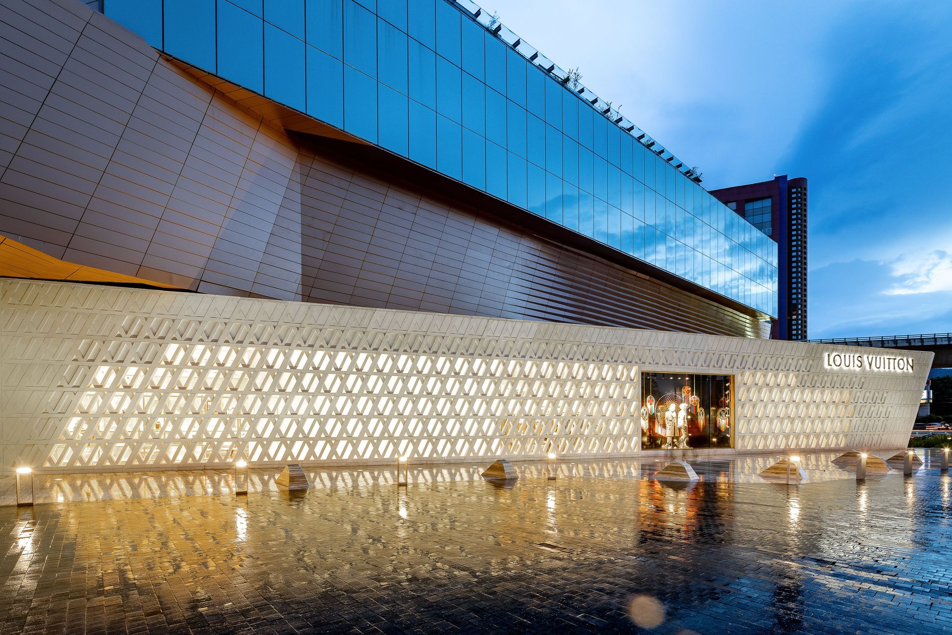The Louis Vuitton Artz store is located in Pedregal, one of Mexico City’s most iconic areas, known for its rich artistic heritage and architectural landmarks like Diego Rivera’s Studio, UNAM, and the Anahuacalli Museum. Inspired by this cultural background and the volcanic stone landscape, the store’s façade was designed to resonate both at an urban scale and through human sensory experiences. Utilizing Mexican expertise in concrete, the store emerges as a monolithic structure with sharp geometry.
