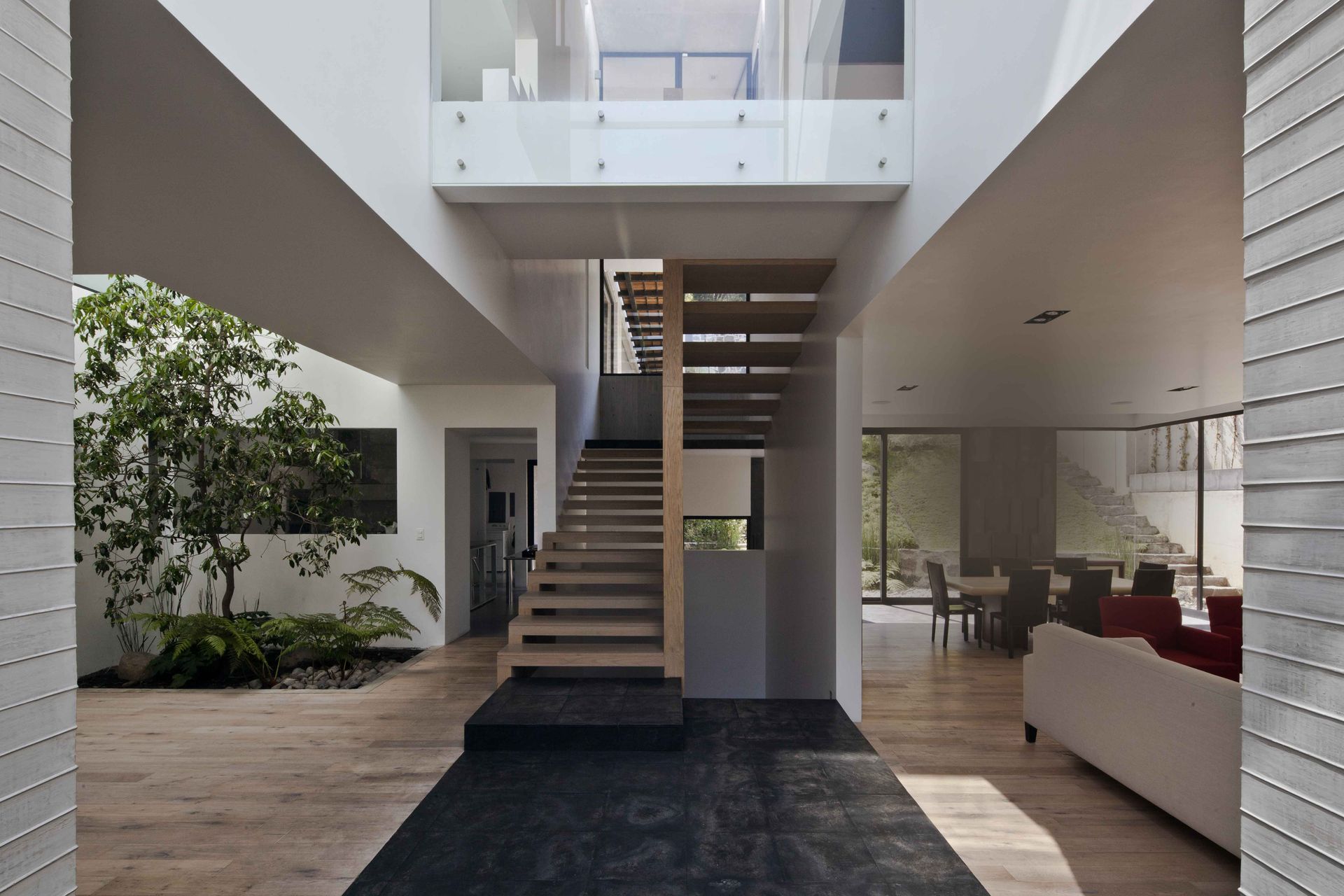 Casa U is situated on a steep, mountainous cliff on the outskirts of Mexico City, offering views of the Valley of Mexico. The design leverages the site’s topography by challenging conventional house layouts, providing rooftop access and descending to private and social spaces.