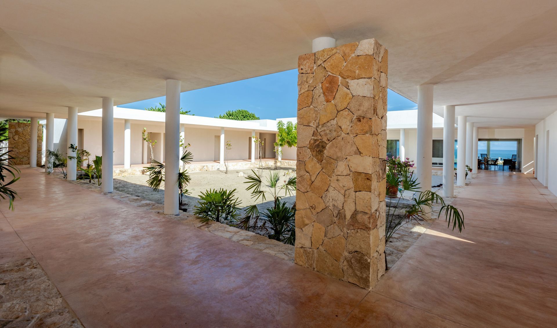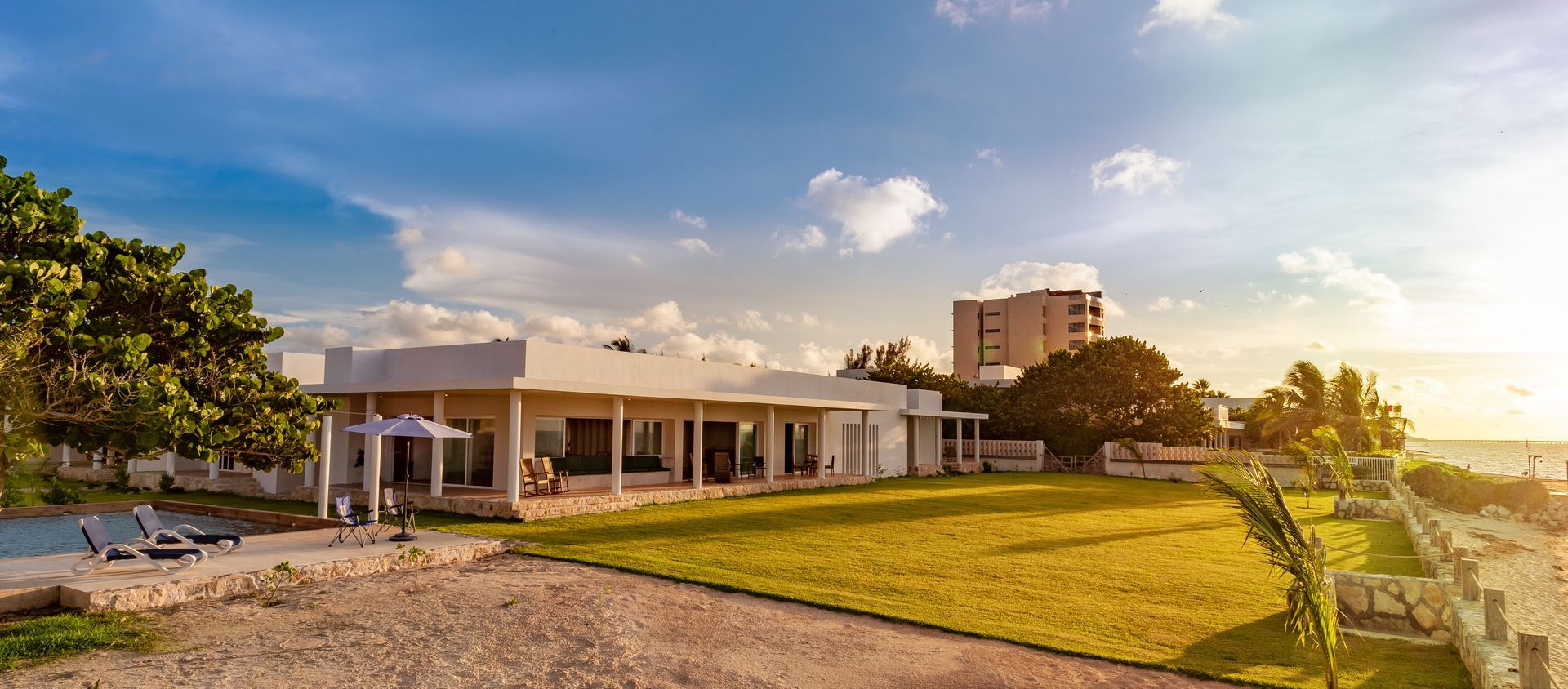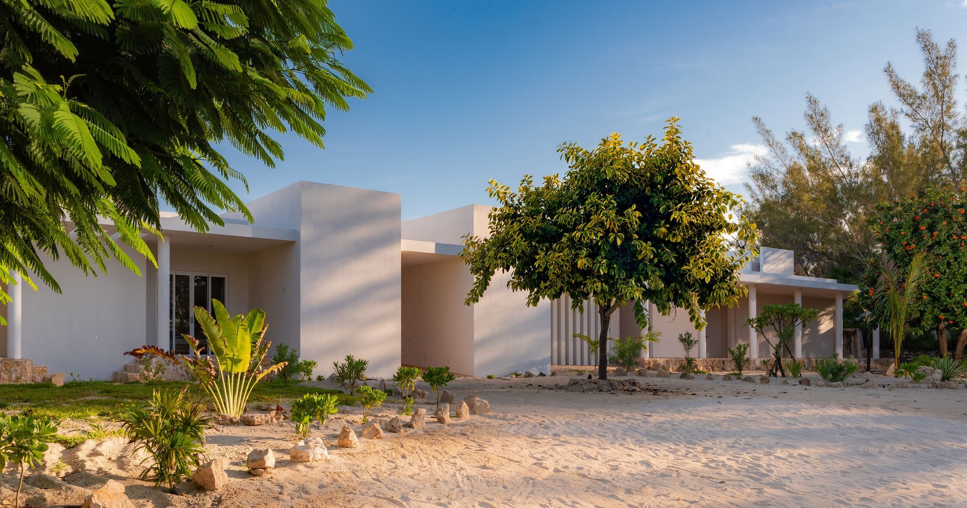 Located in Chicxulub, a coastal area north of Merida in the Yucatan Peninsula, this project replaces a 1950s vacation home damaged beyond repair by corrosion and hurricanes. The original house, with its modernistic porticos and colonnades, had seven bedrooms and served as a vacation retreat for a family of 10. As the family grew to over 45 members spanning multiple generations, the need for a larger space arose.