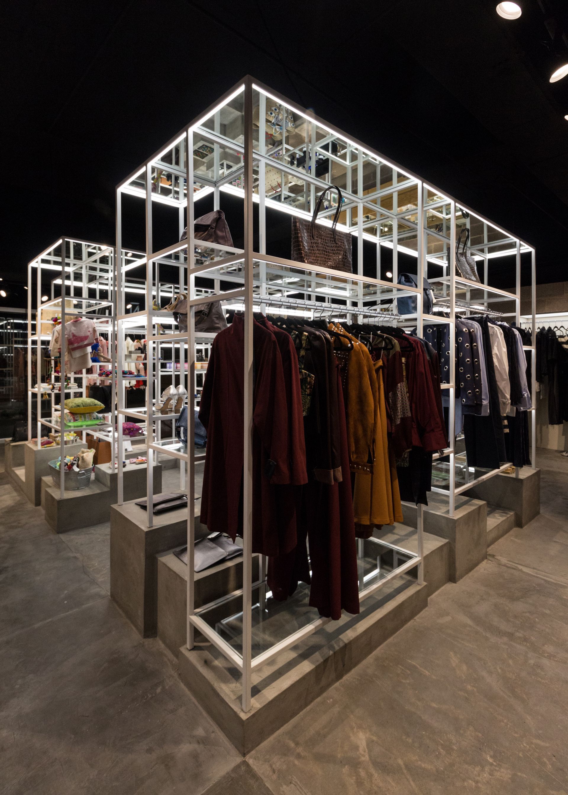 The visual commitment is the maximum reduction of the materials, expressing the frank, daring and genuine character of the brand and allowing any type of product to stand out and mix with each other, becoming a unique, low budget new concept. The story-telling of a universe with an infinity of stories, spaces within others and constant surprise.
