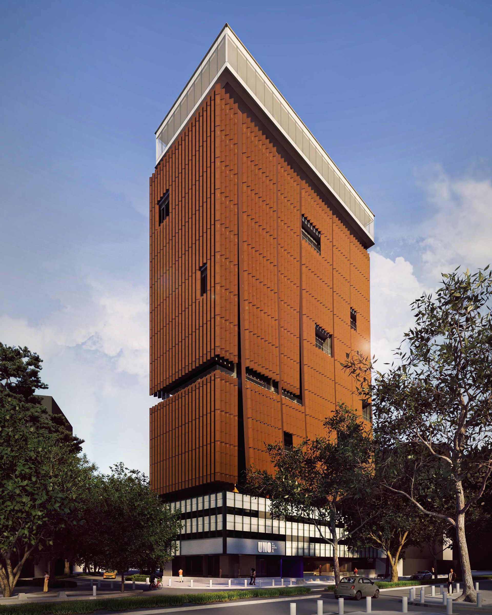 One of the key aspects of the renovation is the reimagining of the building’s façade. The new design focuses on optimizing natural ventilation and improving thermal performance by minimizing heat gain, while also enhancing the visual connection with the urban surroundings. This updated façade not only modernizes the building’s look but also enhances its sustainability, improving energy efficiency and integrating the building more seamlessly into its context.