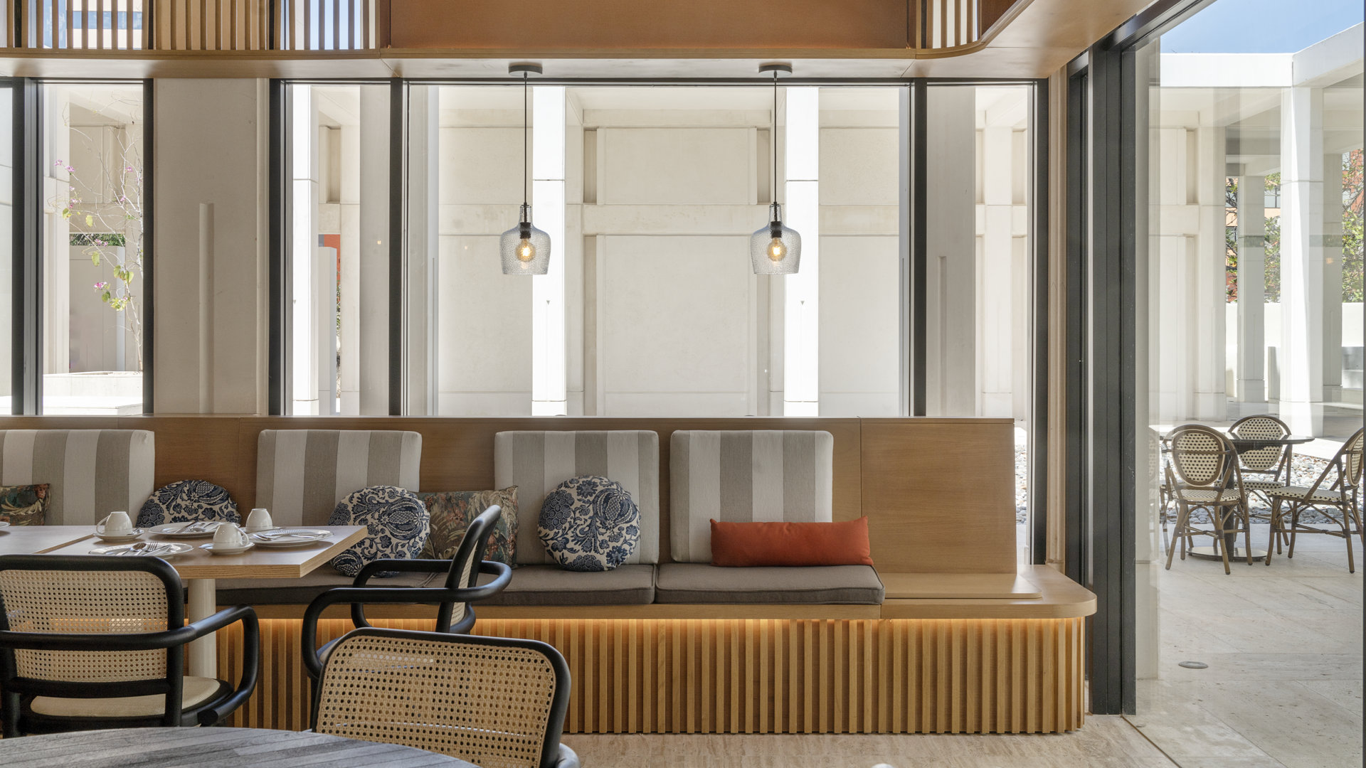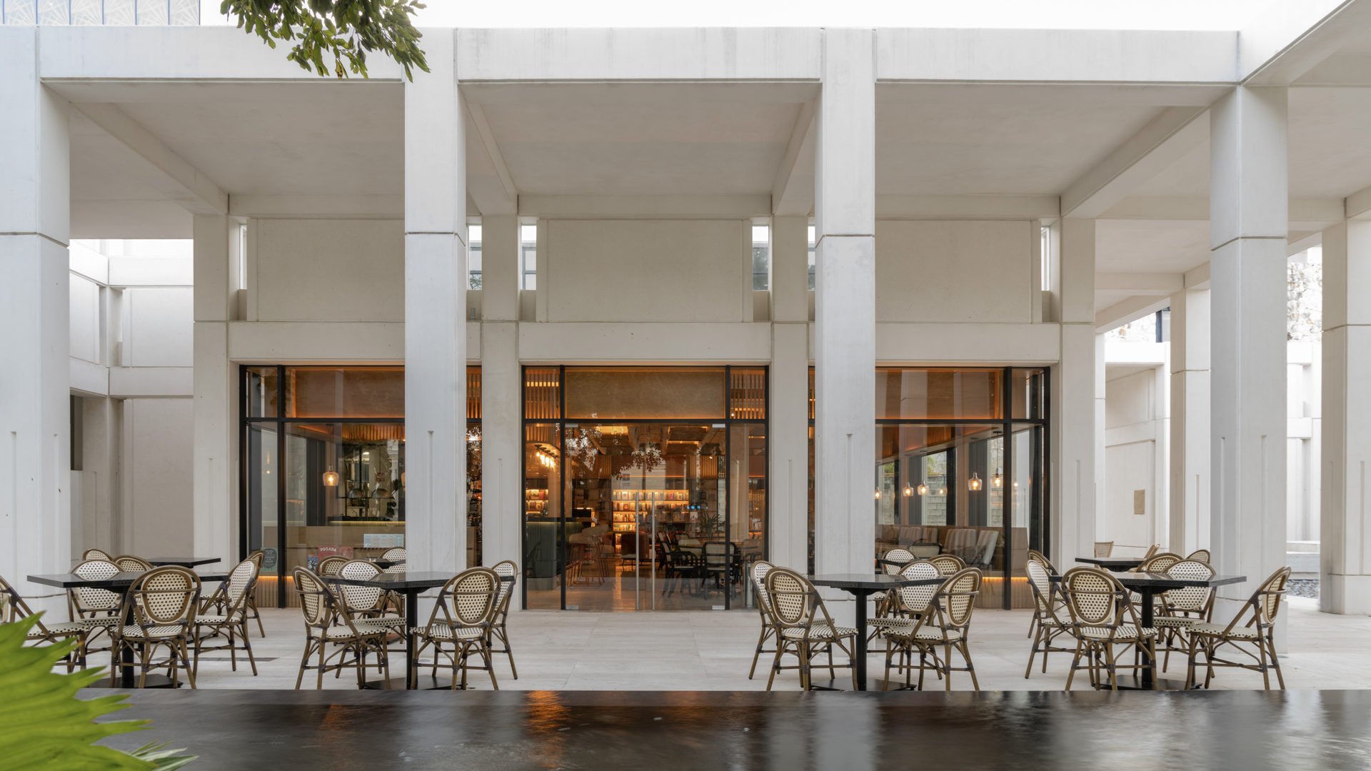 The latest addition to the Quinta Montes Molina includes a restaurant (Avelino & María), café, and bookstore (Dos Encuentros), blending historical charm with contemporary design.