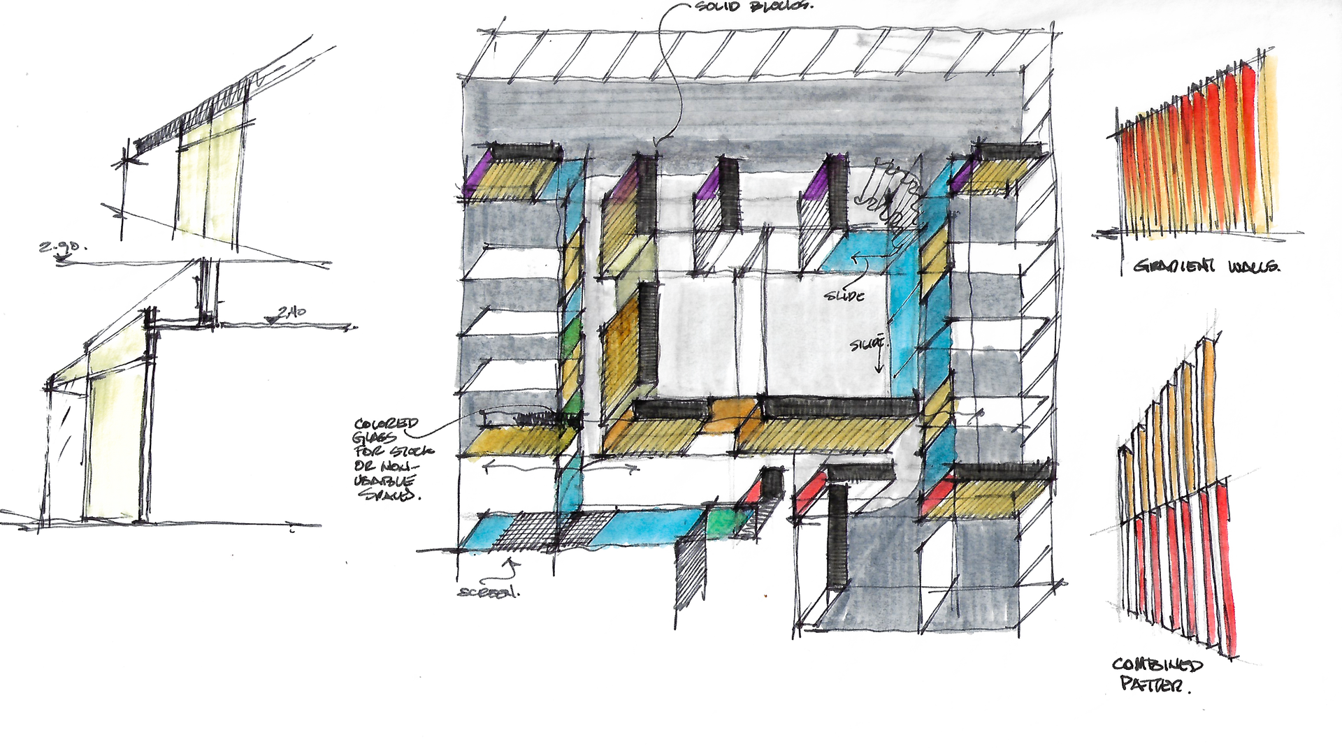 The design optimizes the space’s natural conditions and materials, with a focus on color as a source of vitality, inspiration, and elegance. A sensory route is established, using intense colors that transition from warm to cool tones. Exposed installations are seamlessly integrated into the space, reflecting the honesty of the design.