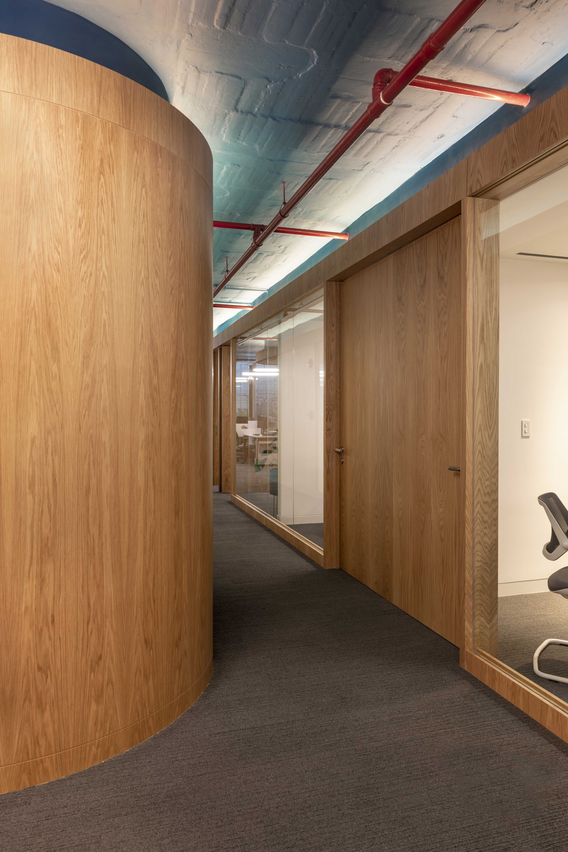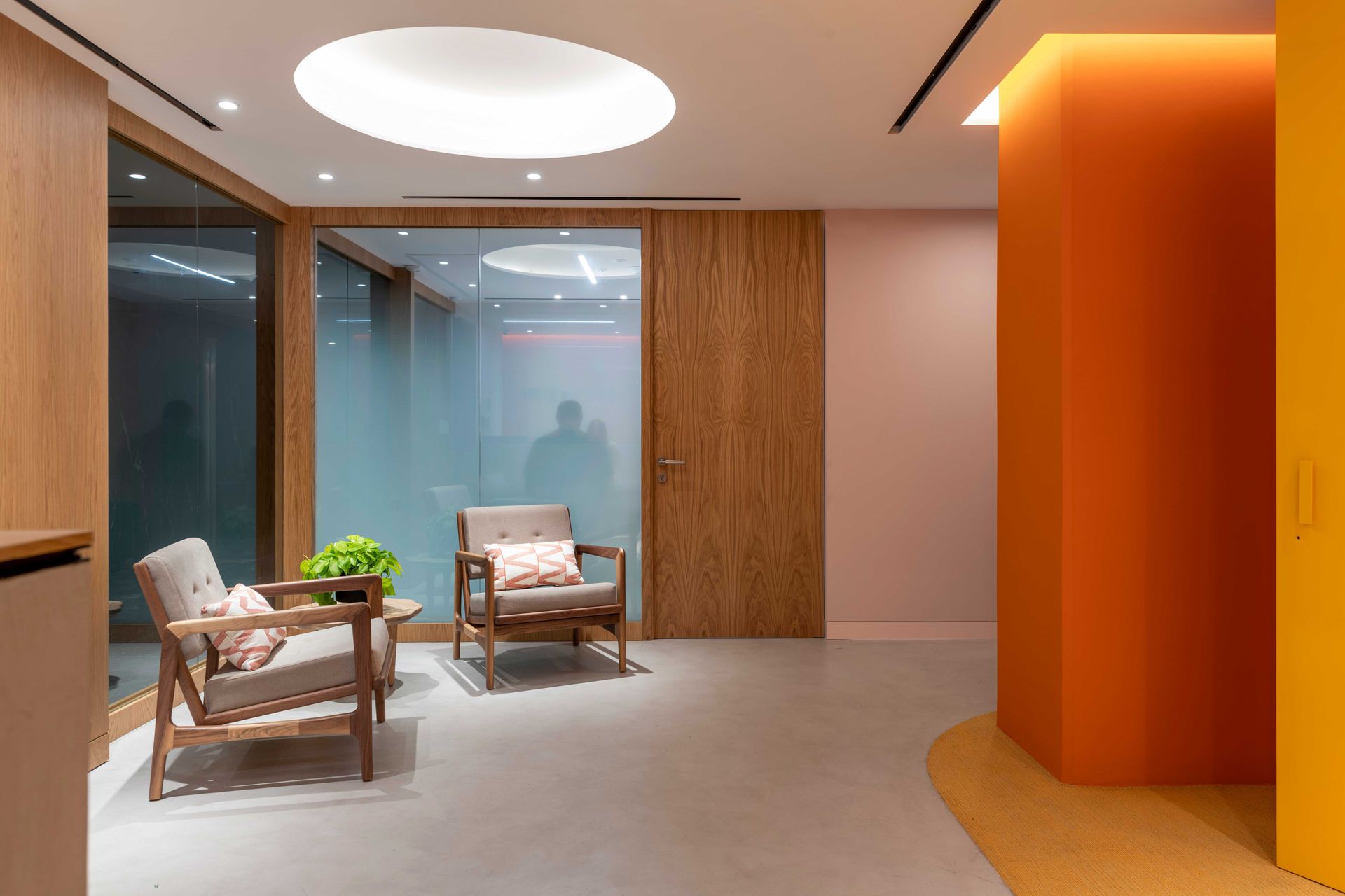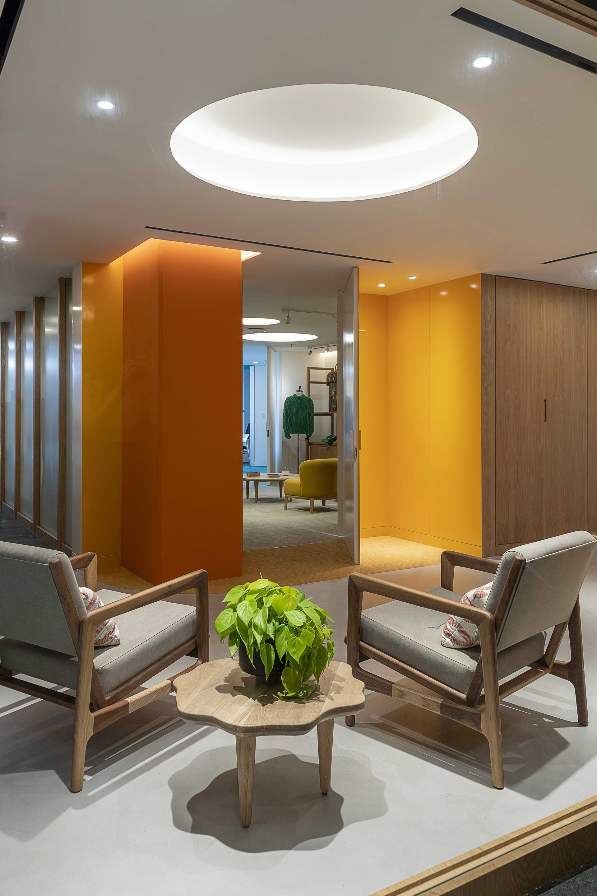 The project also aligns with LEED certification criteria, ensuring optimized energy consumption, air conditioning, and lighting, while emphasizing sustainability. The result is an elegant yet fresh atmosphere that breaks from the traditional office scheme, creating a productive environment where users feel open and focused, even in enclosed spaces.